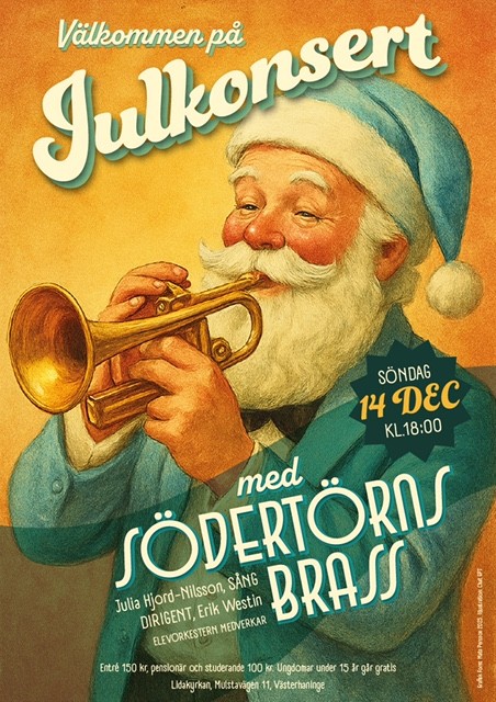 December 2015: Julen närmar sig och då är det dags för julkonserter! Södertörns brass kommer ha två julkonserter tillsammans med Nynäshamns Kammarkör helgen den 5-6 december. På lördagen kommer det att vara konsert kl. 18:00 i Nynäshamns kyrka, och på söndagen kommer det vara konsert i Lidakyrkan kl. 18:00. Dirigenter kommer vara Gyöngyi Csomos och Karl Nicklas Gustavsson. På konserten i Lidakyrkan kommer även elevorkestern medverka. Varmt välkomna!
